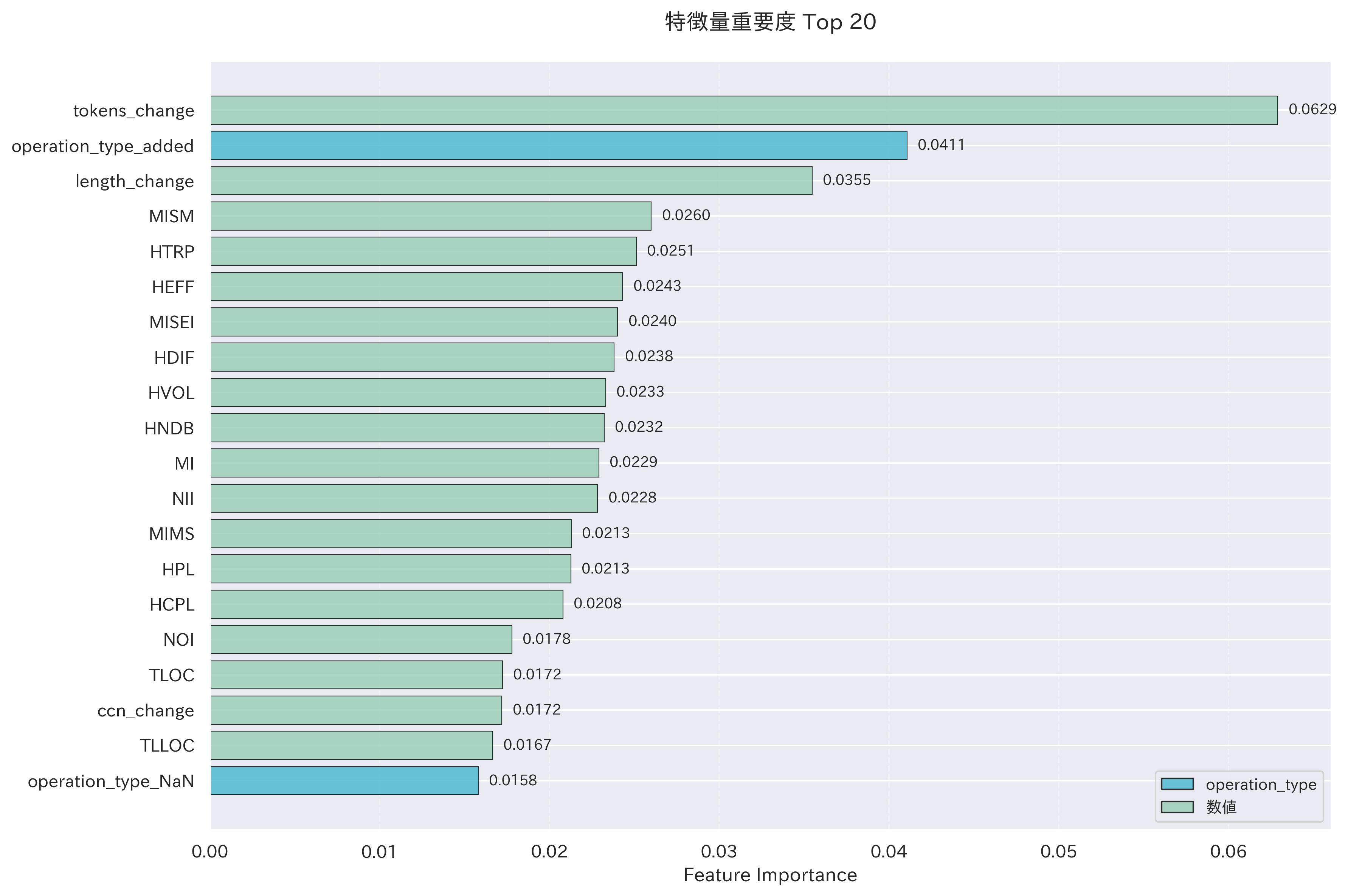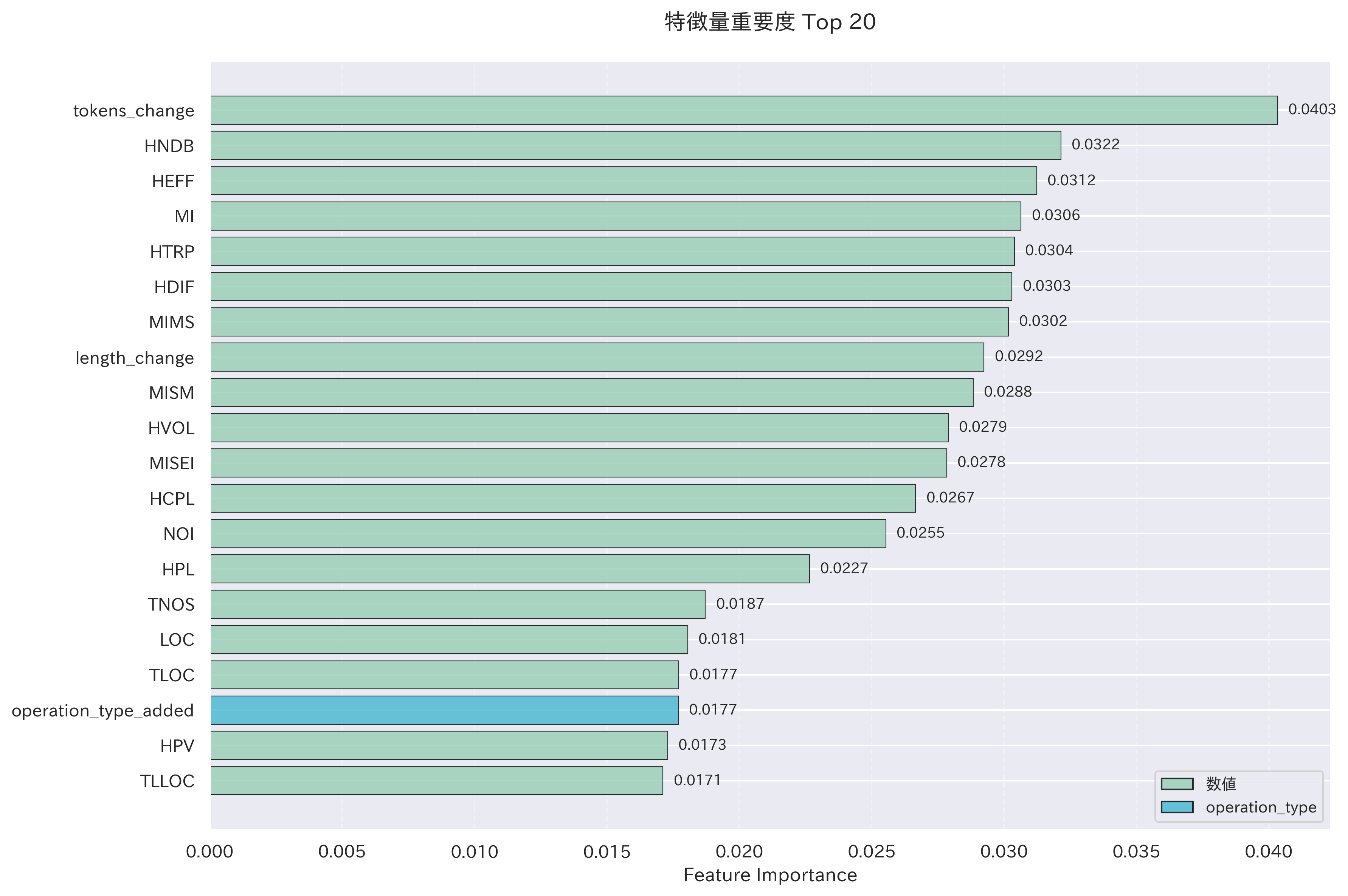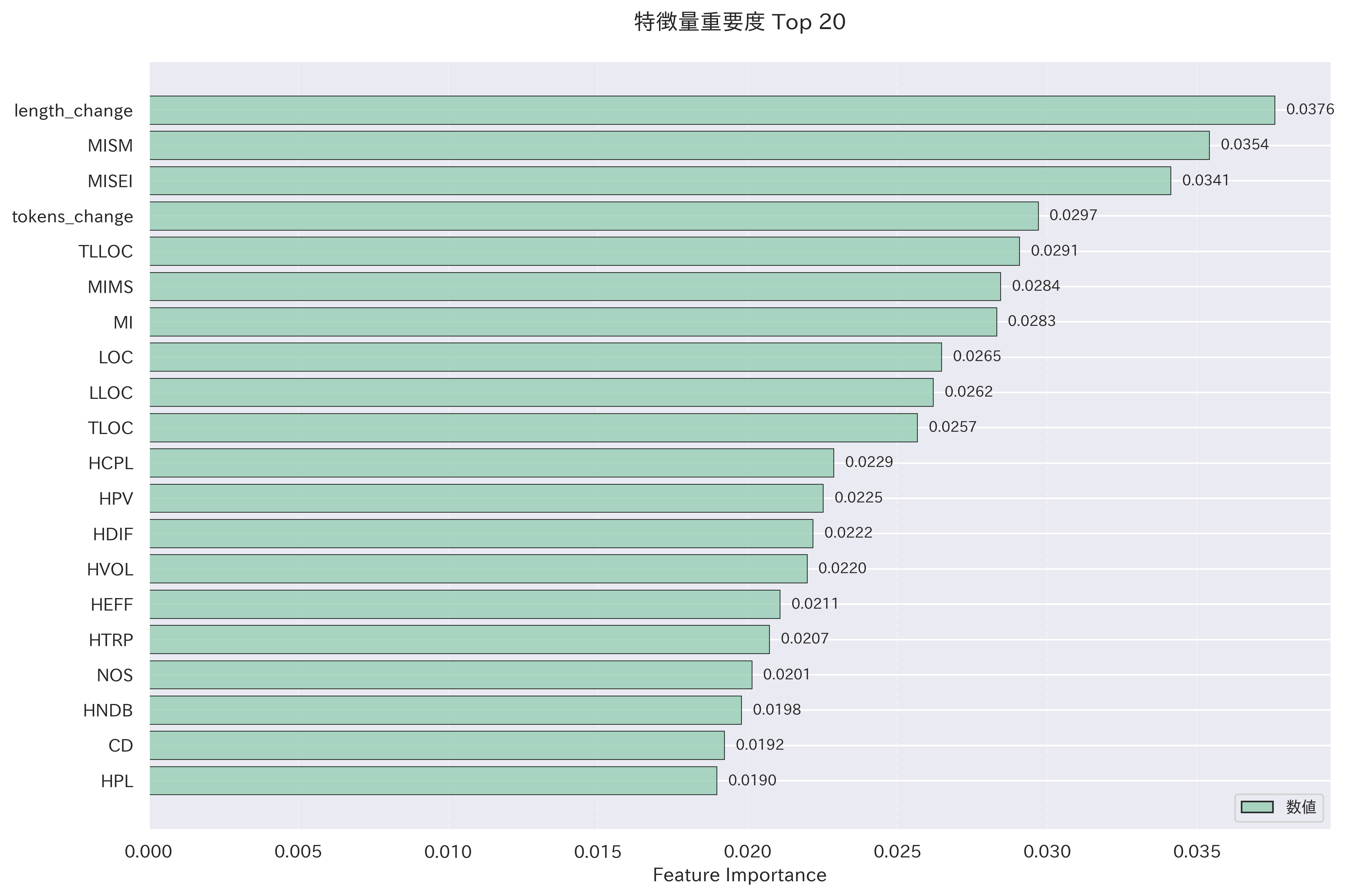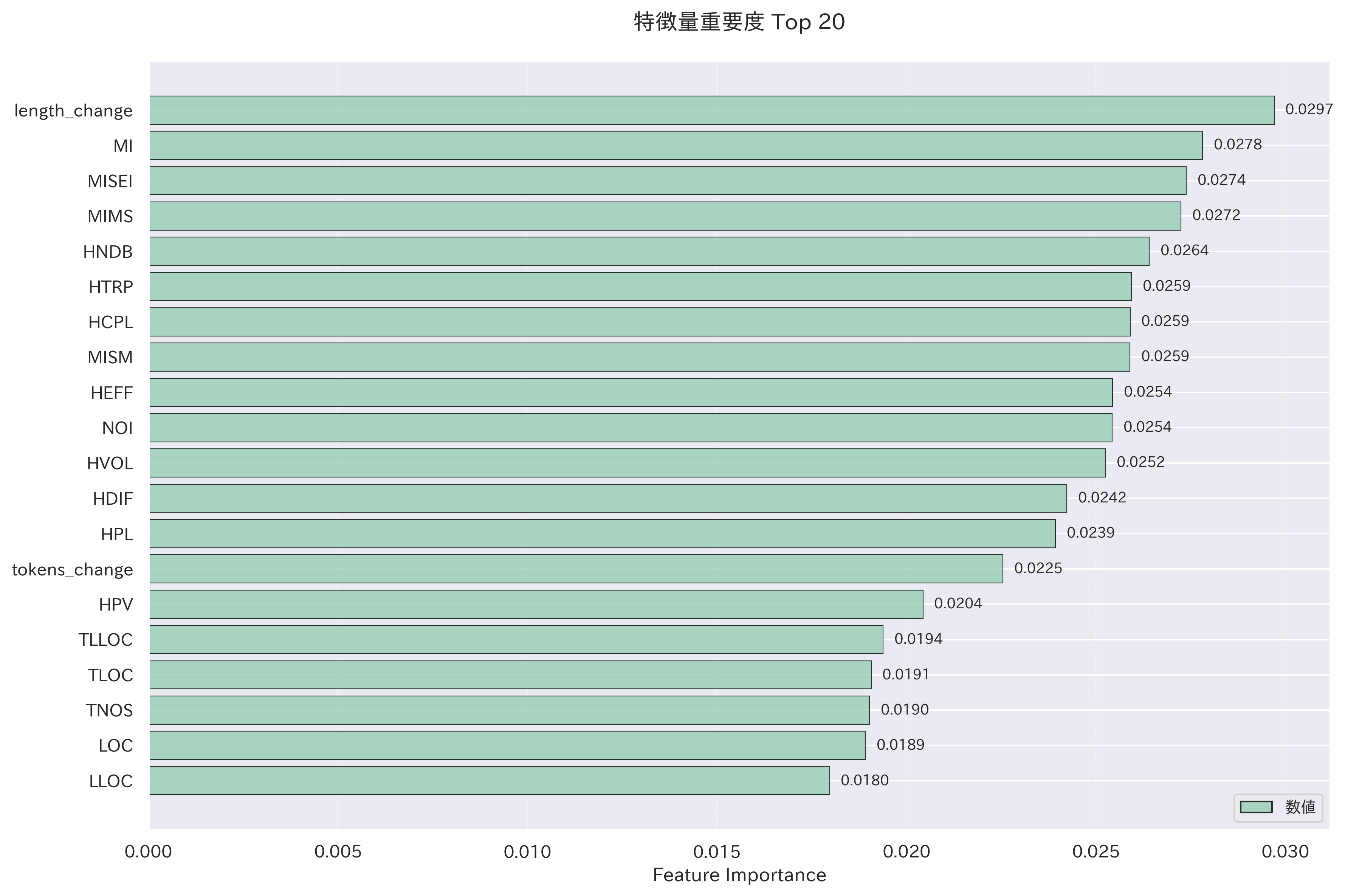 - トークン数やコード行数の変化量の重要度が高い