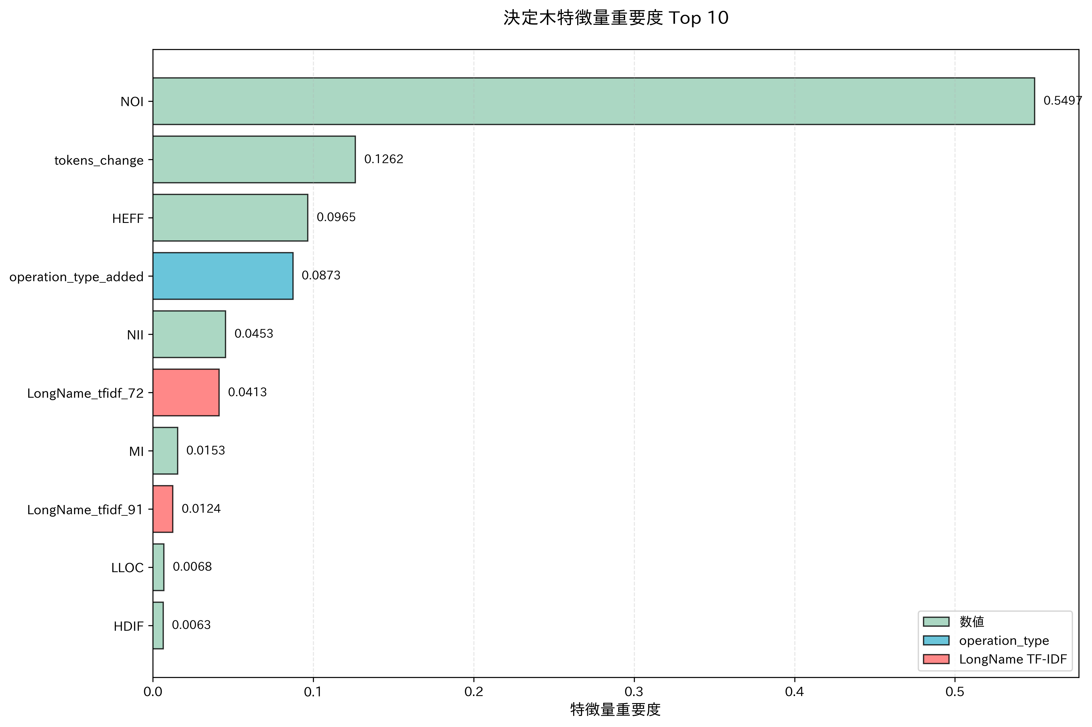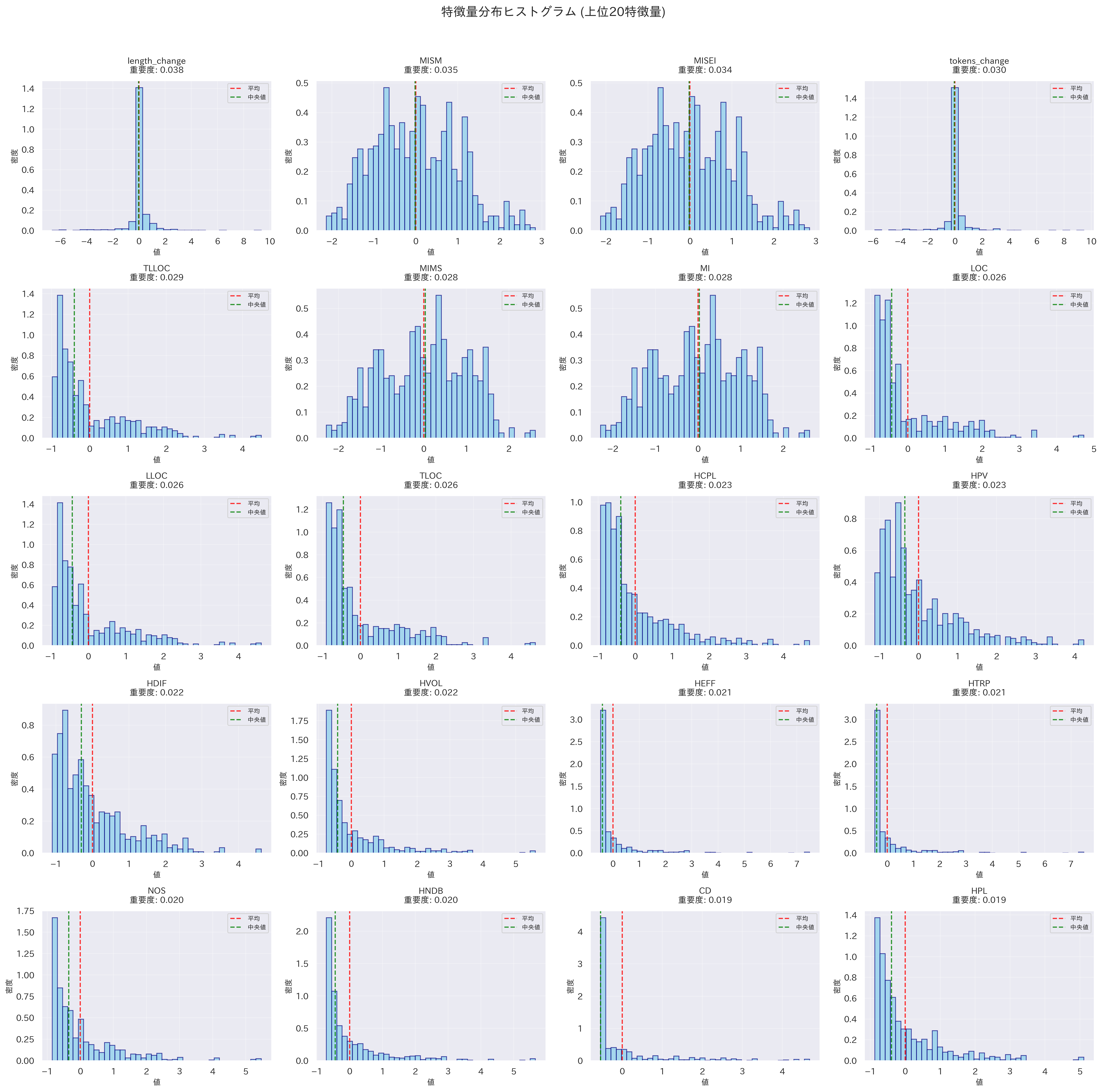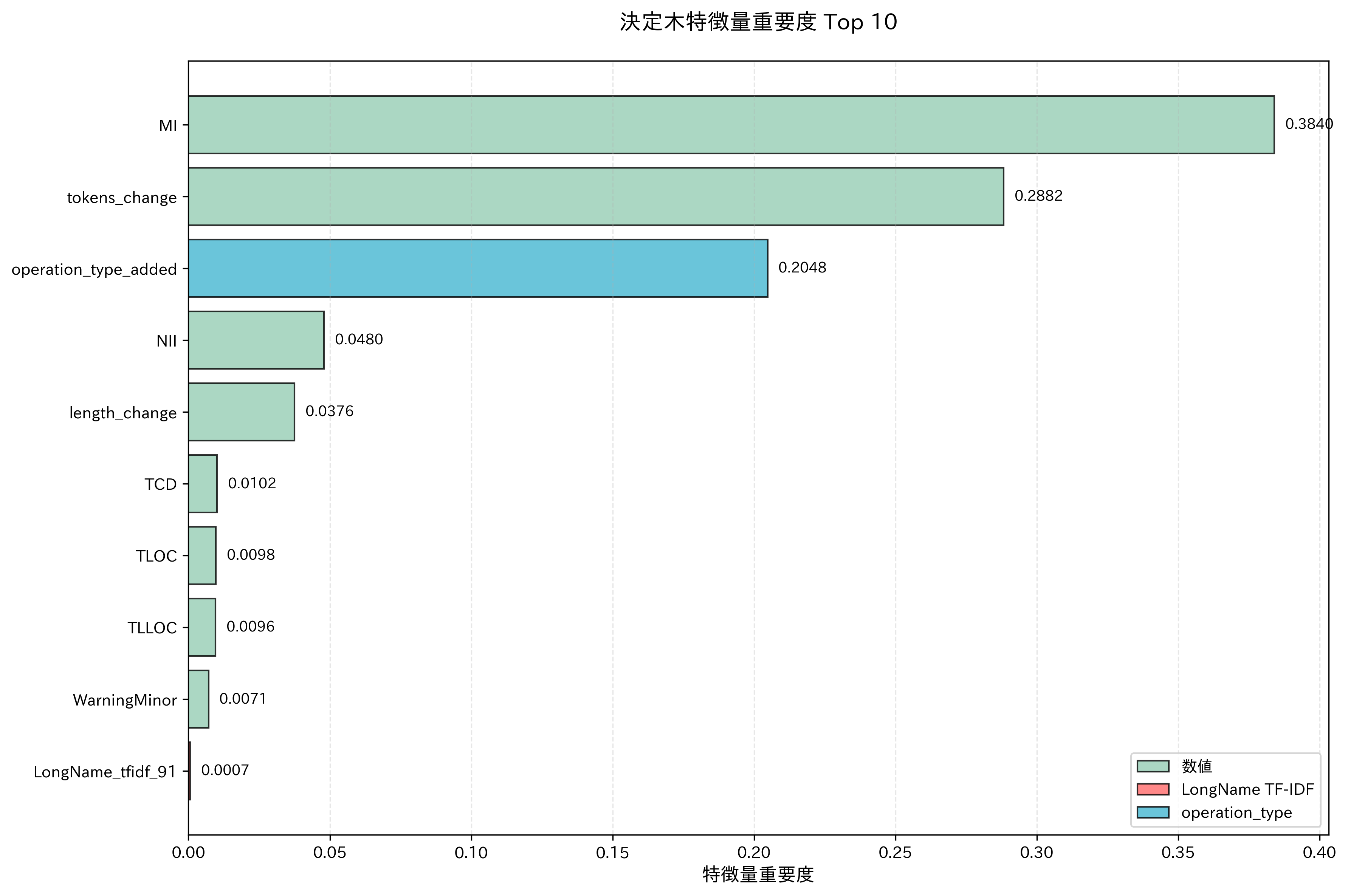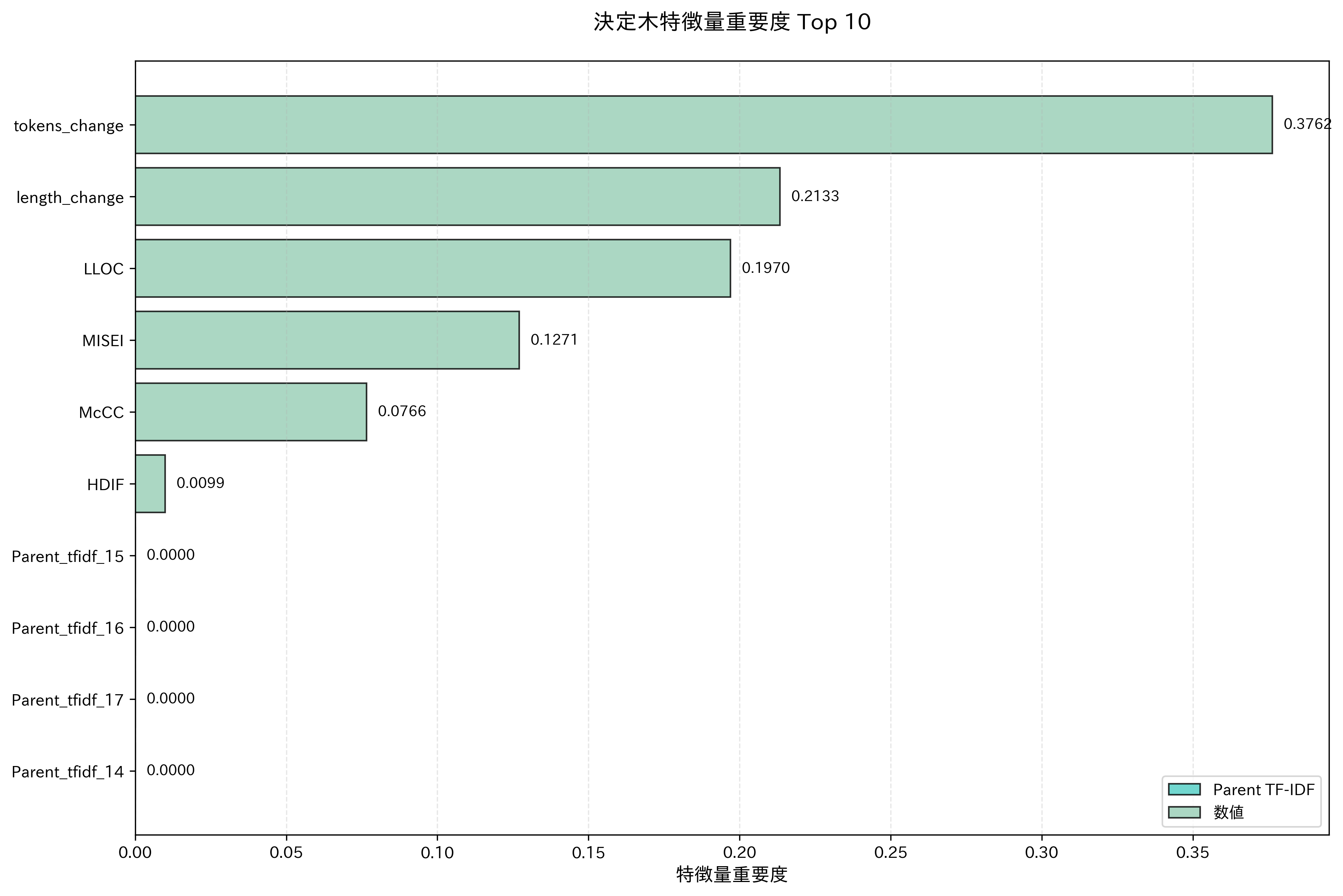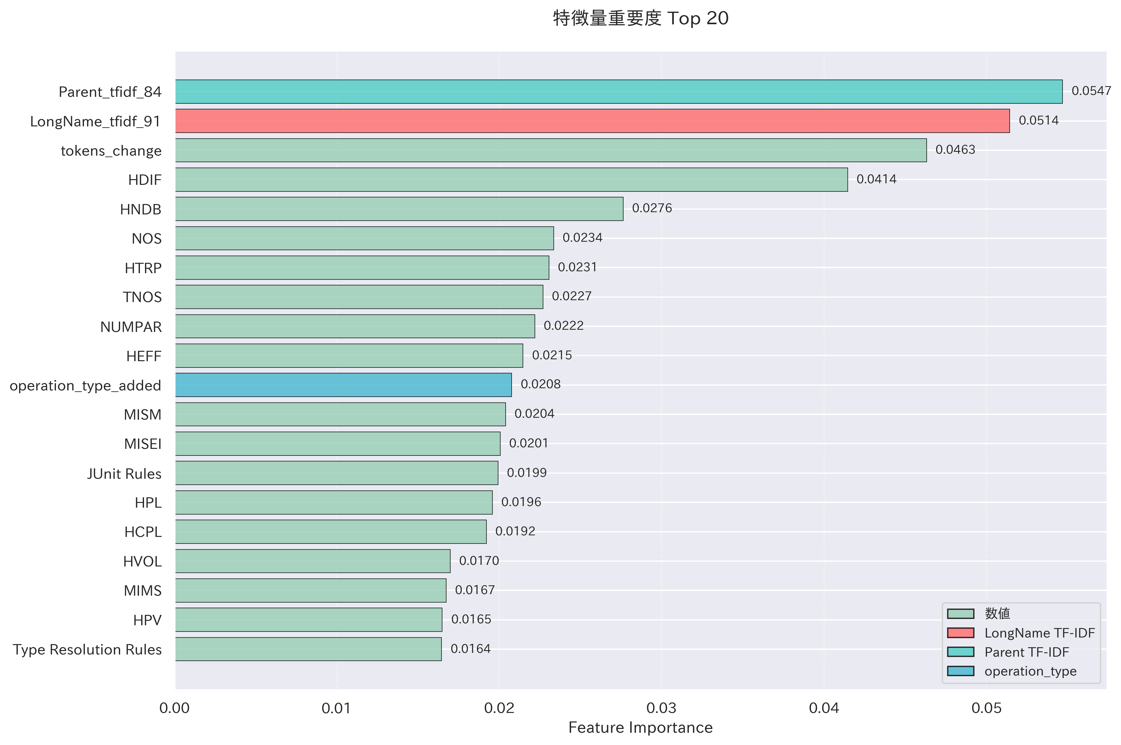 - トークン数やコード行数の変化量の重要度が高い