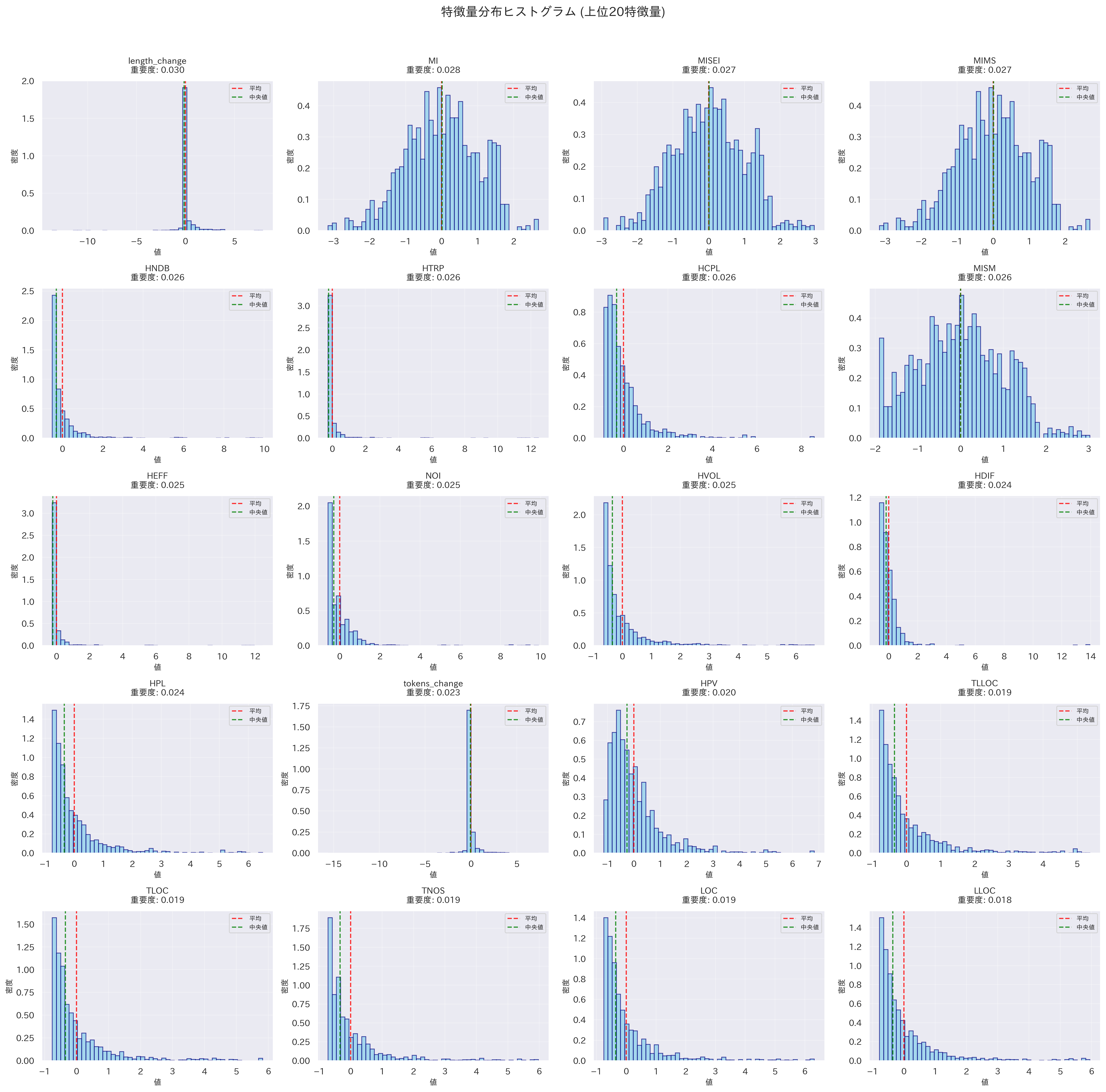 - ハルステッドメトリクスやMaintainability Index関連のメトリクスの重要度も高い