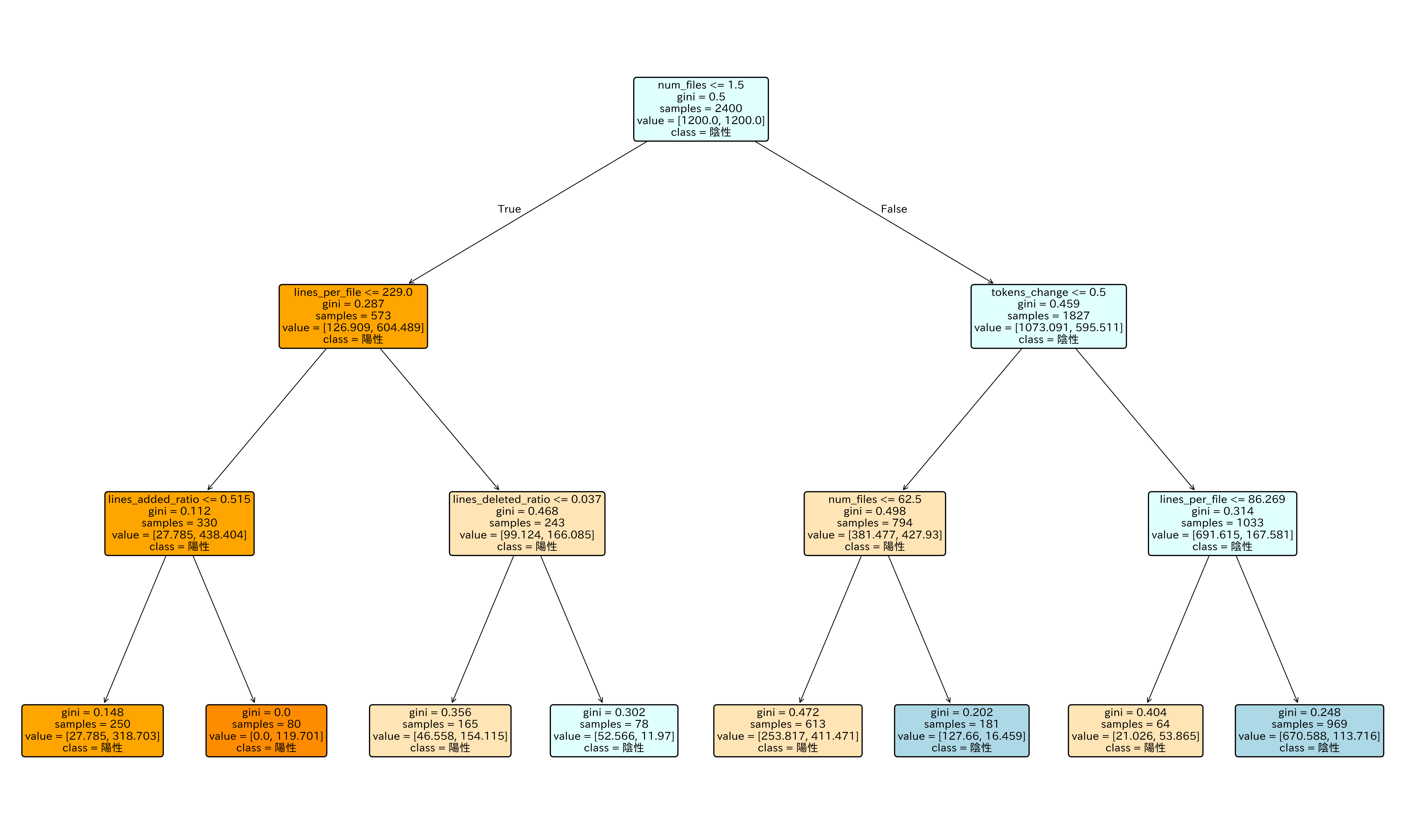 - どうして変更されたファイル数が増えるほど陽性確率が下がる傾向にあるのか?