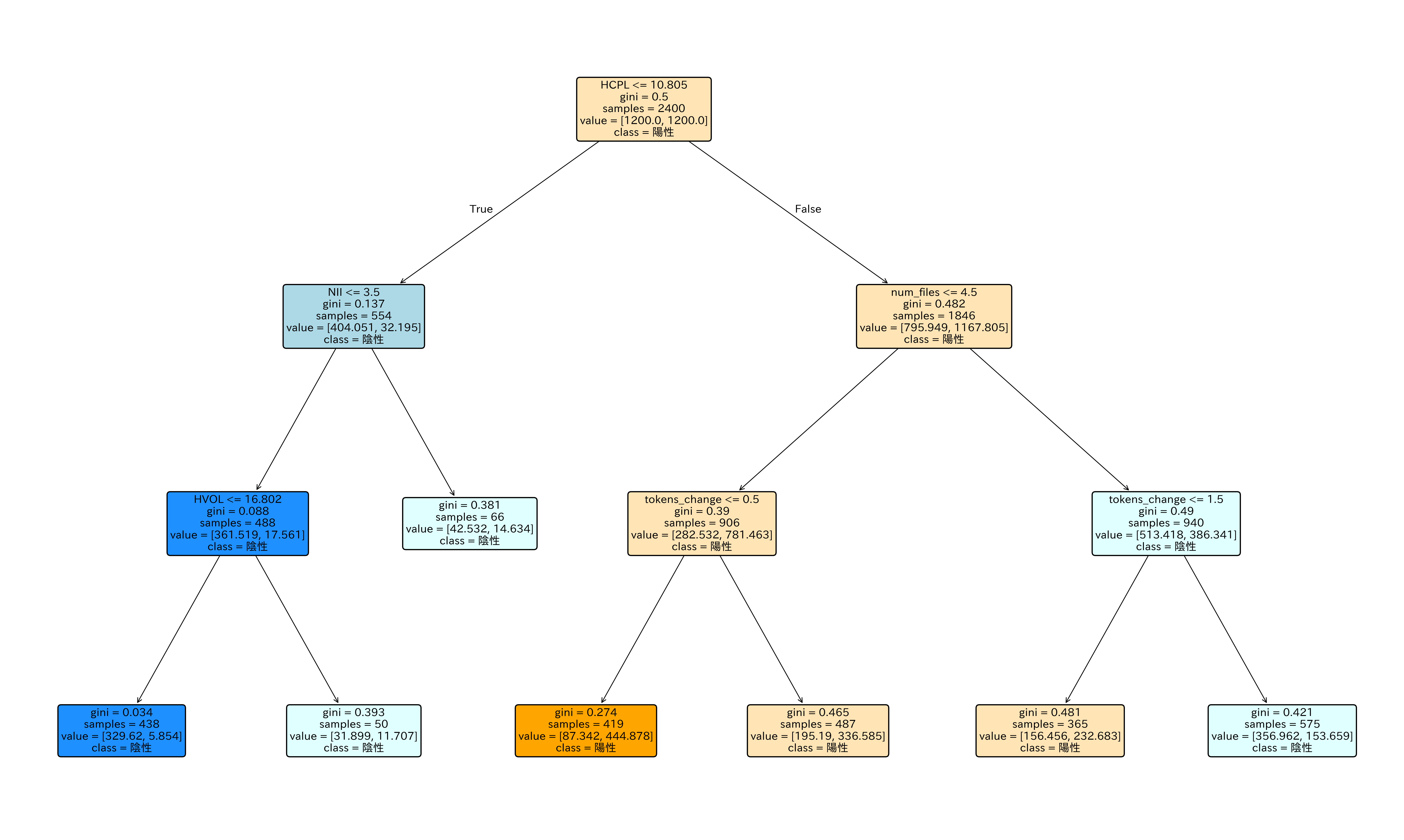- データを陽性クラスに分類するノードの数が以前よりも増え、陽性クラスの分類における確信度も増加